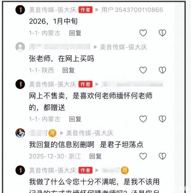 张大庆说这些书不会在网络上售卖,全都送给喜欢何晴的粉丝们。预计2026年1月中旬,就可以出版了。