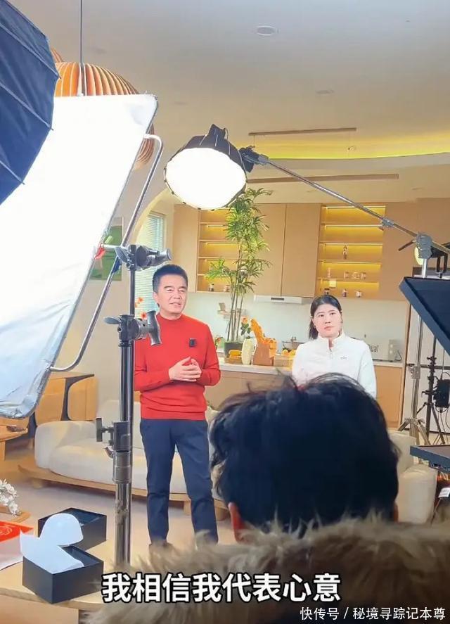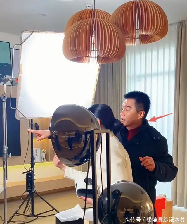 许亚军已经61岁了,身材没有发福的迹象,穿红毛衣、牛仔裤,留着利落的寸头,还是很显精神。 虽然摄影棚的环境一般,但许亚军工作起来很认真。老戏骨拍广告,自然是手到擒来的。